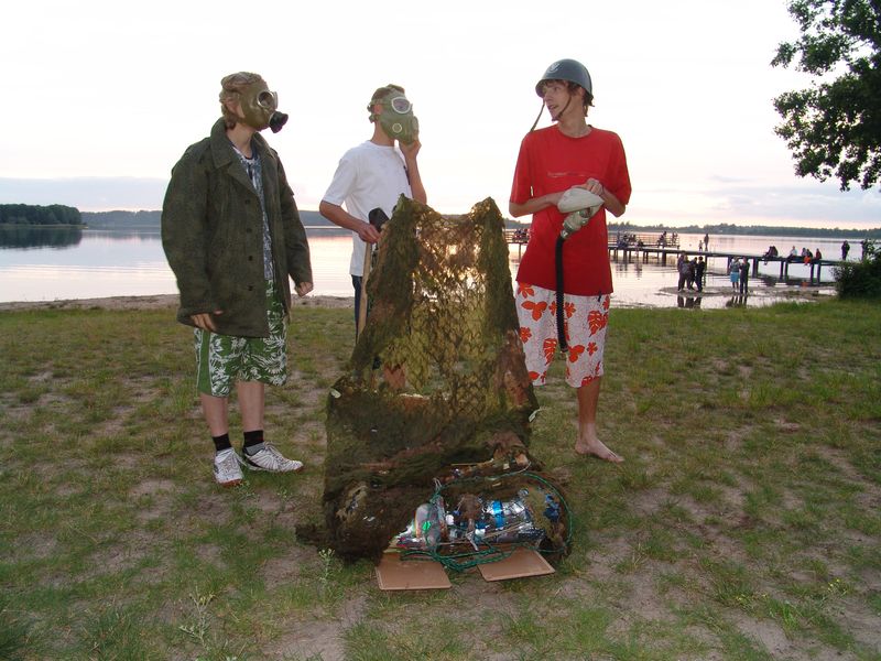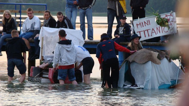Po spektaklu odbyła się II edycja konkursu "Pływanie na byle czym", w której udział wzięły 3 drużyny: Nowy Dwór, Witowo i Jedwabno. Każda z drużyn zaprezentowała wcześniej skonstruowany pojazd. Zwycięzcą został pojazd wodny "SZEJKOWÓZ" z Witowa, na czele którego stał młody, ale jakże dumny szejk - i miał powody do dumy, bo pojazd mknął po wodzie niczym torpeda. Kolejne, II miejsce, przypadło pojazdowi z Nowego Dworu. Mieszkańcy sołectwa Nowy Dwór skonstruowali MINI TITANIC z liczną grupą rozbitków. Niestety, Titanic zatonął ale jeden z rozbitków (p. Danuta Trzcińska - sołtys Nowego Dworu) odnalazła "skarb oceanu", a dzielny Leonardo di Caprio (Pani Grażyna Wojciechowska - mieszkanka Nowego Dworu) uwiecznił na obrazie tonący Titanic. Z kolei III miejsce to pojazd bojowy przygotowany przez młodzież z Jedwabna: Jacka Teske i Krzyśka Palmowskiego. Uzbrojeni w "torpedę" i maski tlenowe dopłynęli do mety.
