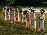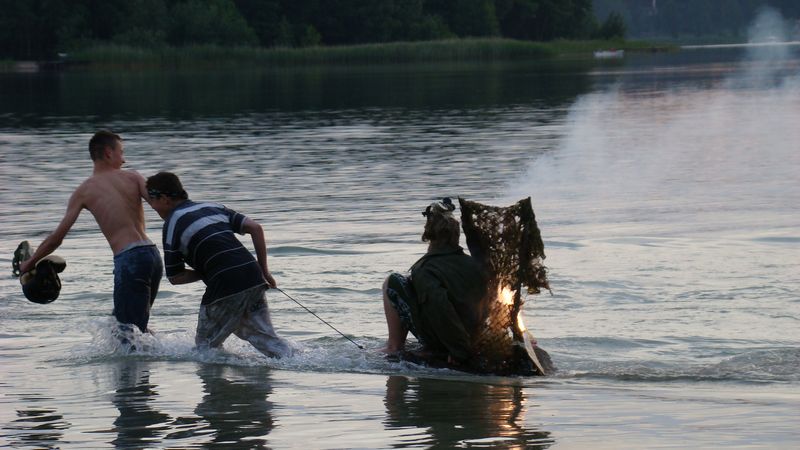KORZYSTAJĄC Z OKAZJI CHCIELIBYŚMY SERDECZNIE PODZIĘKOWAĆ SPONSOROM, UCZESTNIKOM ZAJĘĆ GOK JEDWABNO, MIESZKANCOM SOŁECTW NOWY DWÓR I WITOWO ORAZ JACKOWI TESKE I KRZYŚKOWI PALMOWSKIEMU, KTÓRZY WYKAZALI SIĘ AKTYWNĄ I TWÓRCZĄ POSTAWĄ PODCZAS IMPREZY "MAGIA NOCY ŚWIĘTOJAŃSKIEJ". Z wyrazami szacunku Dyrektor i pracownicy GOK Jedwabno "Magia Nocy Świętojańskiej" to projekt dofinansowany przez Starostwo Powiatowe w Szczytnie, Gminną Komisję Rozwiązywania Problemów Alkoholowych przy Urzędzie Gminy w Jedwabnie (Komisja sfinansowała całe warsztaty taneczne) oraz Ośrodek Wypoczynkowy "RUSAŁKA" Grażyny Tomczak. Realizację zadania rozpoczęliśmy pod koniec marca, kiedy to grupa taneczna STEP - ART, działająca w GOK Jedwabno pod instruktażem p. Barbary Żebrowskiej, wyjechała na warsztaty tańca współczesnego do zaprzyjaźnionego nam Miejsca Inicjatyw Pozytywnych w Kaczym Bagnie. Efektem dwudniowych warsztatów były dwa układy tańca współczesnego, którego choreografią zajmowała się p. Marta Szymańska we współpracy instruktora GOK. Dodatkową atrakcją dla uczestników warsztatów było krótkie wprowadzenie w tajemniczą sztukę POI pod kierunkiem dr Michała Łapińskiego - właściciela Kaczego Bagna. Wystarczyło kilka godzin pracy i nasza młodzież szybko zamieniła pojki treningowe na pojki ogniowe. Tak zrodził się pomysł na teatr plenerowy z wykorzystaniem tańca z ogniem. Po powrocie rozpoczęliśmy intensywną pracę treningową, przygotowującą naszą młodzież do warsztatów tańca z ogniem, które odbyły się w przeddzień Świętojanek. Zamysł był taki, że młodzież miała zaprezentować krótki popis zdobytych podczas warsztatów umiejętności, jednak zaskoczony zaangażowaniem i zdolnościami młodych ludzi instruktor dr Michał Łapiński, postanowił przygotować wraz ze swoim teatrem ognia, spójny spektakl teatralno - taneczny. Pomysł okazał się wielkim sukcesem... brakuje słów by określić jakie emocje towarzyszyły temu pokazowi. Jestem pełna uznania dla tych młodych ludzi - ich talent, zaangażowanie i ciężka praca są godne podziwu. Jeszcze 3 lata temu, mogliśmy policzyć młodzież na palcach jednej ręki, teraz na terenie GOK Jedwabno działa prężna grupa młodych, zdolnych ludzi. Widzą to także rodzice, którzy nie ukrywali wzruszenia, a niejeden z nich uronił łzę - oczywiście łzę radości, bo zobaczyli swoje dzieci w trudnej formie artystycznej. Sami przecież wiemy, że ogień to nic innego jak żywioł, który oprócz swej dobroczynności ma również niszczącą moc. Młodzież przezwyciężyła strach i pokazała, że ogień tańczył tak jak oni tego chcieli. Satysfakcja obopólna i wielka motywacja do dalszych działań. Te niezwykłe widowisko było oczywiście clou programu świętojańskiego. Oprócz tego uczestnikom imprezy przedstawiony został krótki spektakl nawiązujący do zwyczajów Nocy Świętojańskiej, w którym udział wzięli uczestnicy zajęć tanecznych, teatralnych i plastycznych GOK Jedwabno oraz śpiewająca młodzież z Witowa. Podczas spektaklu odnaleziono kwiat paproci, prezentowano modę świętojańską (wianki i stroje wykonano na warsztatach plastycznych 18 kwietnia i 30 maja, pod instruktażem p. Beaty Jankowskiej), taniec współczesny chochlików i nimf oraz puszczanie wianków. To właśnie wianki wzbudziły wielki entuzjazm wśród panów, którzy jeden za drugim rzucali się do wody, by wyłowić jeden z nich.