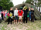 W dalszej części zaprosiliśmy wszystkich na spektakl "O Kniaziu Popielu i Piaście Kołodzieju" w wykonaniu studia teatralnego ART - RE z Krakowa. Była to podróż w mityczną przeszłość państwa polskiego, oparta na historycznych wątkach powieści "Stara baśń" Józefa Ignacego Krasickiego. Aktorzy włączali widownię do wspólnej zabawy, dzięki czemu widzowie poznali pradawny zwyczaj postrzyżyn, a przy tym świetnie się bawili. Kiedy nastawał wieczór przeprowadziliśmy konkurs plastyczny, w którym uczestnicy rysowali kwiat paproci. Trudno było wyłonić zwycięzcę, gdyż każdy kwiat był bardzo ładny, a przecież nikt z nas nie wiedział tak naprawdę jak wygląda ten magiczny kwiat. Prace można oglądać w GOK Jedwabno. I nadszedł czas na stały punkt programu świętojańskiego - teatr ognia. Młodzież i instruktorzy GOK Jedwabno razem z profesjonalnym teatrem ognia z Kaczego Bagna zaprezentowali spektakl, w którym przedstawiono korowód niosący rannego dobrego ptaka oraz kanię - ptaka naprzykrzającego się ludności wiejskiej, który dziesiątkował i niszczył zbiory. Jego zawodzenie, które przypominało słowa "pić, pić", sygnalizowały, że będzie susza i znowu coś się nie powiedzie. Dlatego też chwytano go i rytualnie ścinano.